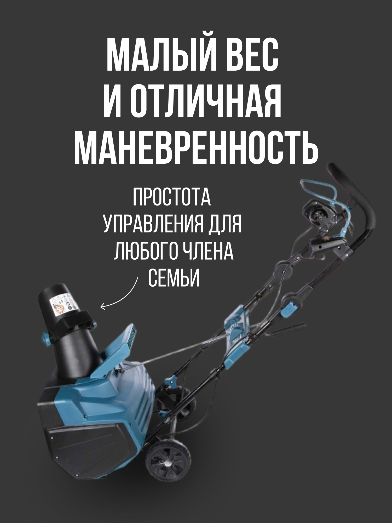 Плюсы: Лёгкий,маневренный,электрический,дальность выброса снега.