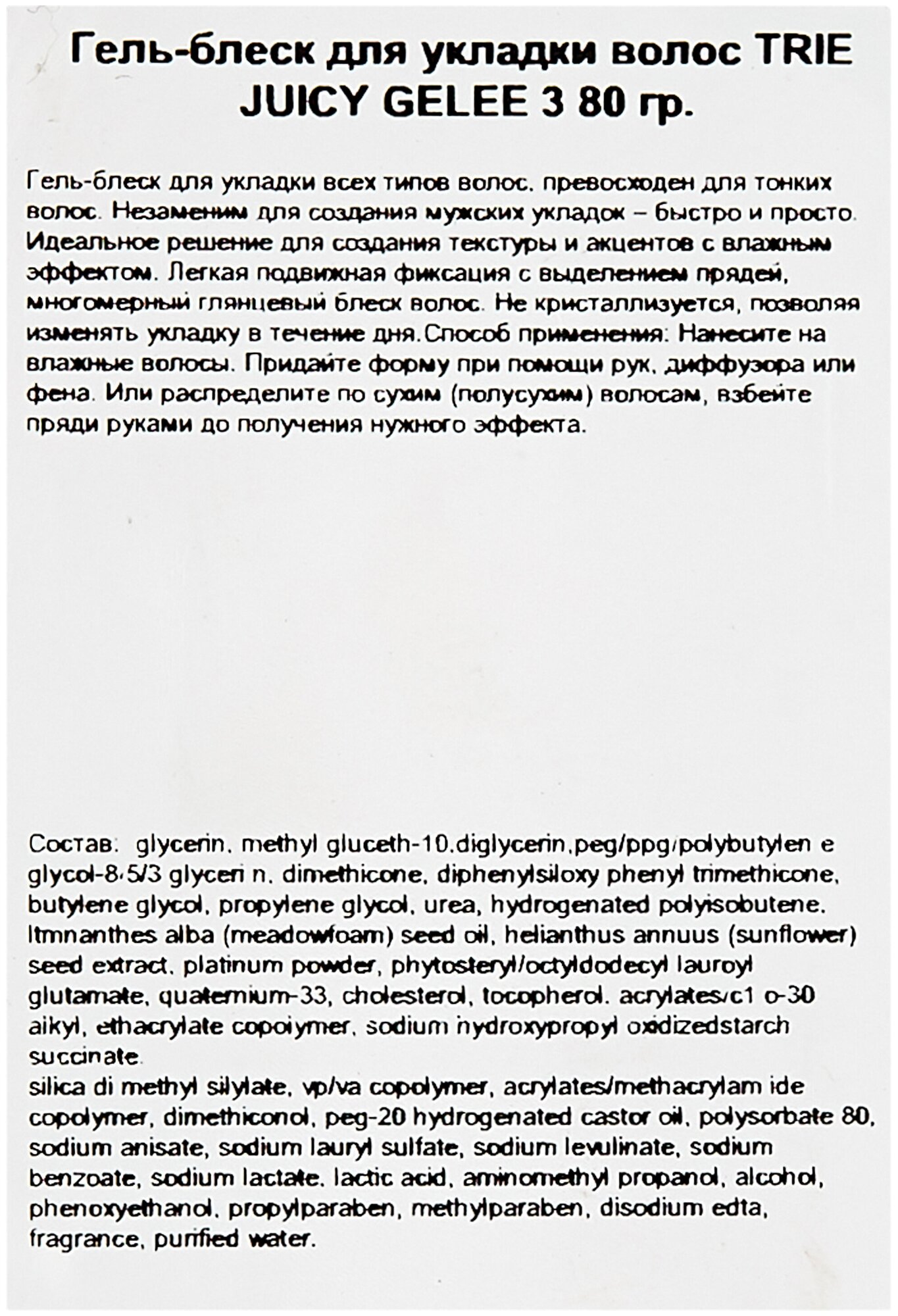 Lebel Trie Juicy Gelee 3 - Гель-блеск для укладки волос 80гр