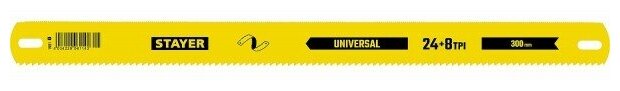 Купить STAYER Universal 8+24 TPI, 25х300 мм, 1 шт, коробка 50 шт, Универсальное двустороннее широкое полотно по дереву и металлу (1591)