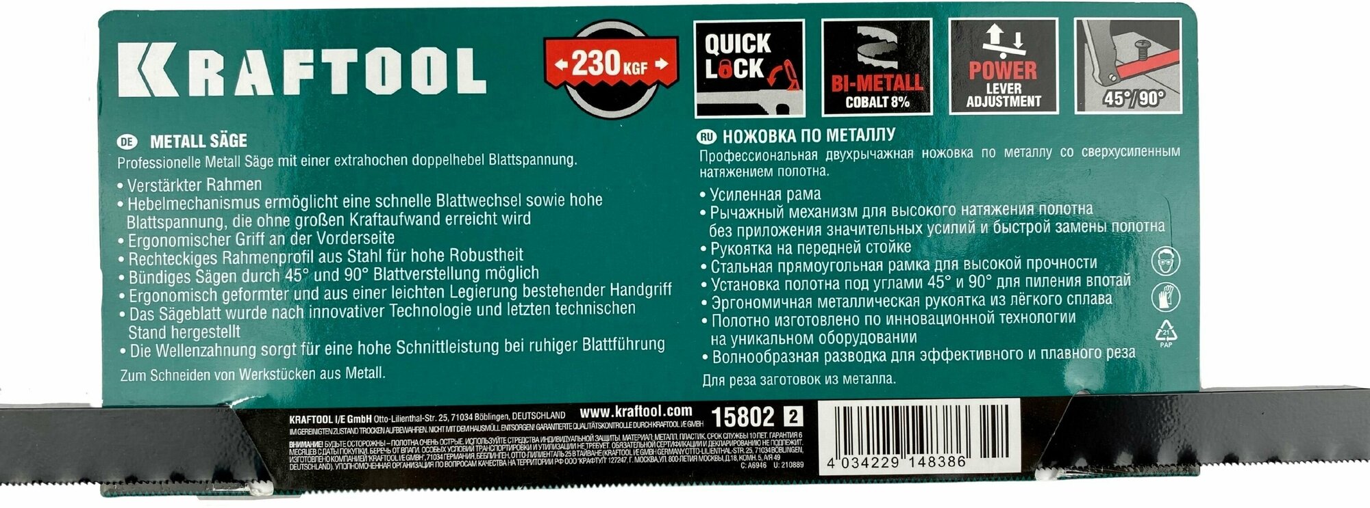 Ножовка Kraftool 15802_z01 по металлу grand быстрое рычажное натяжение биметаллическое полотно 1580 .