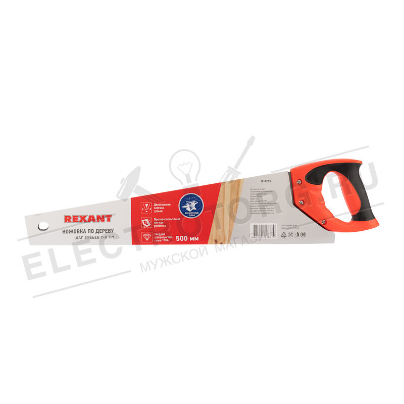 Купить Ножовка по дереву REXANT Зубец 500 мм, 7-8 TPI, каленый зуб 2D, двухкомпонентная рукоятка