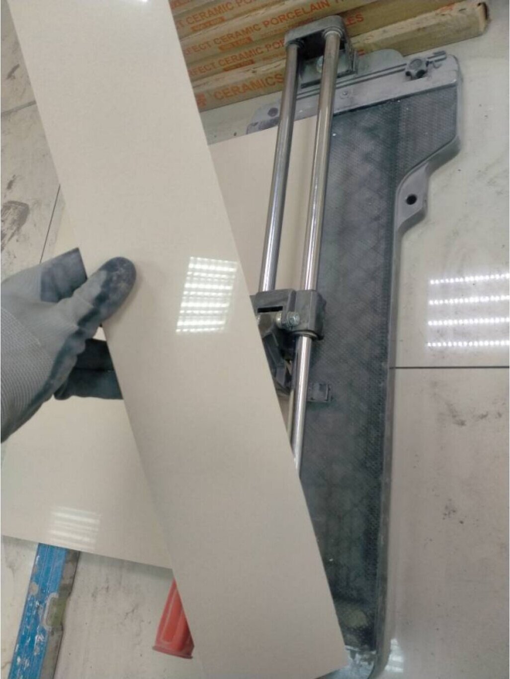 | Плюсы: | Подшипники на каретке это самое главное - очень мягкий ход. Не тяжелый. Длина рабочий зоны около 64 см, плитку 60 см (максимальный размер, на который расчитан плиткорез) комфортно размещать. Для сравнения старый бибер на 40 был впритык, совать в него половую плитку чтобы отрезать было то еще приключение. Режет четко, слом получался без сколов и бугров, ровный (возможно пока ролик новый все хорошо). Что еще понравилось - в каретке с роликом есть сверху окошко, через которое ролик видно и можно спозиционировать на необходимой линии реза (не надо заглядывать сбоку под углом и метиться попадет не попадет куда надо). В станине есть отверстия для крепления, можно привернуть к верстаку или какому либо основанию. |