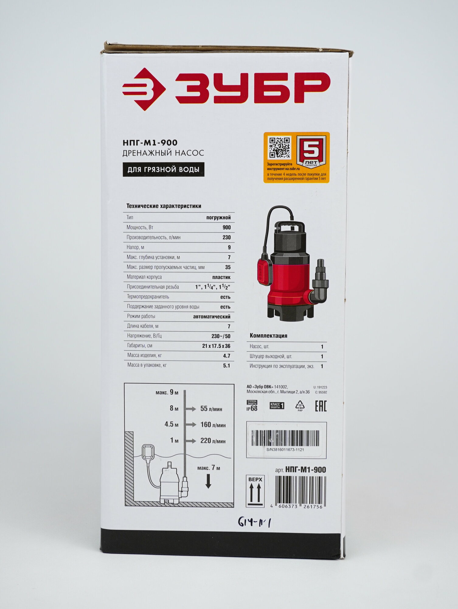 Насос погружной дренажный Зубр НПГ-М1-900, 900 Вт, 230л/мин
