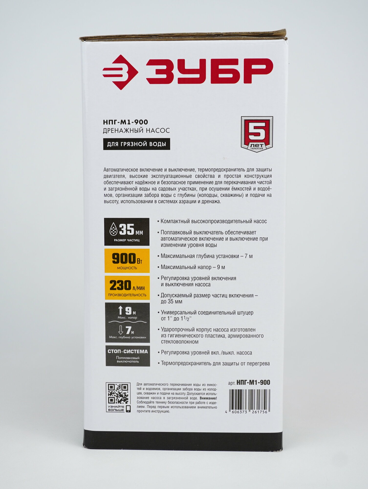 ЗУБР НПГ-М1-900, дренажный насос для грязной воды, 900 Вт