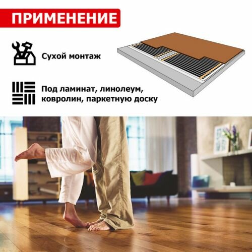 Инфракрасная пленка под ламинат, паркет Национальный Комфорт Теплый пол шир. 0,5м, длина 25м, (220 Вт/кв. м), 12,5кв. м.