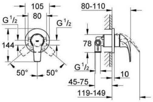 Готовое решение для гигиенического душа скрытого монтажа Grohe BauCurve 123072