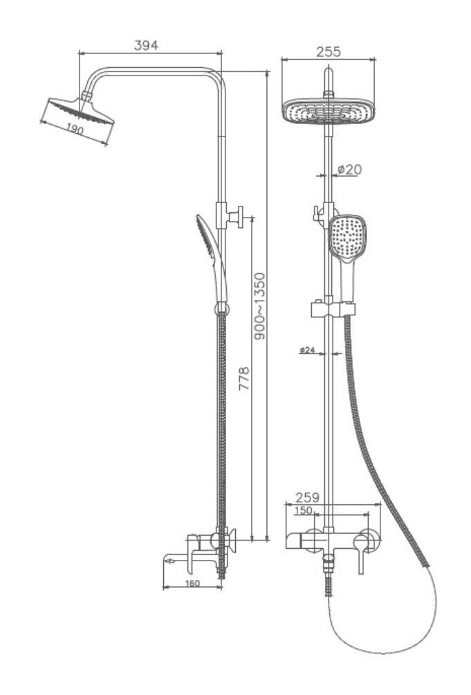 | Комплектация | с душевой лейкой / с шлангом для душа / с кронштейном / верхний душ / душевая стойка / Смеситель |