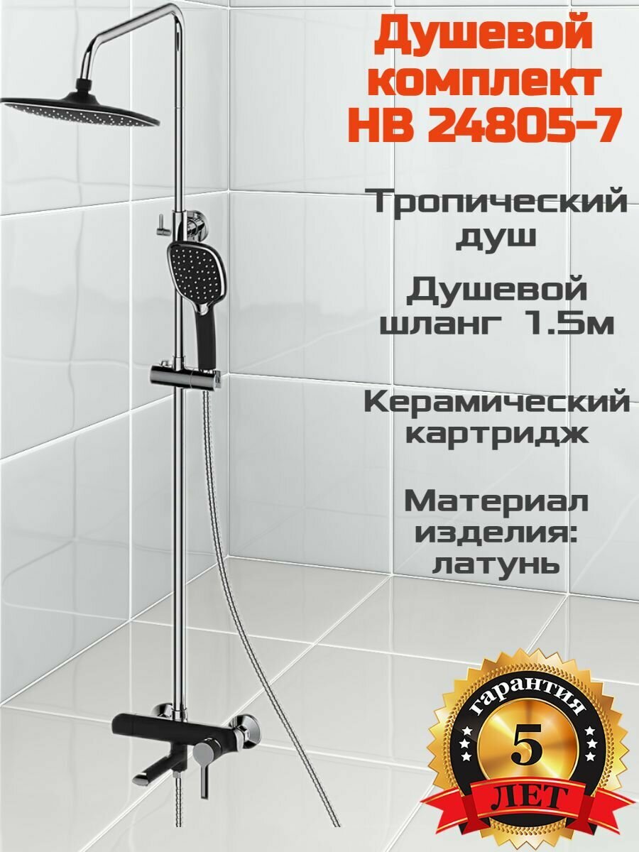 Купить Душевая система Haiba HB24805-7, излив служит переключателем на лейку, черный/хром