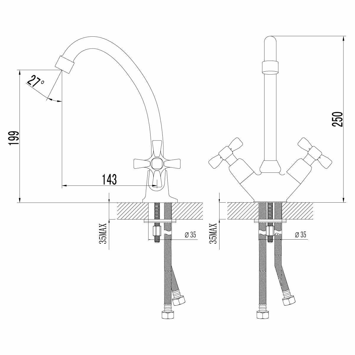 | Минусы: | Кран горячей воды пришлось перекрутить (кран-буксу) - не под руку закрытие/открытие |