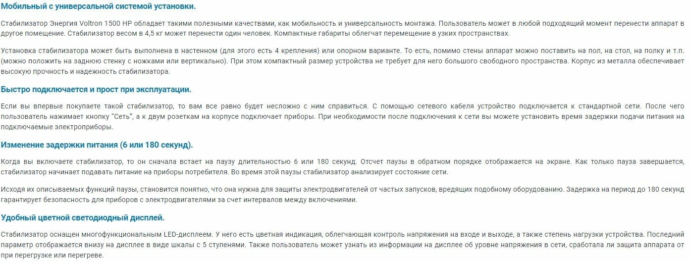Ниже Вы можете прочитать отзывы на Стабилизатор напряжения Энергия VOLTRON 1500/1,5кВА/1,2 кВт/Стабилизатор напряжения 220В., ознакомится с подробными характеристиками, посмотреть интересные обзоры и фотографии на Стабилизатор напряжения Энергия VOLTRON 1500/1,5кВА/1,2 кВт/Стабилизатор напряжения 220В..