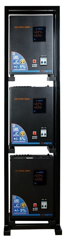 Стабилизатор напряжения однофазный Энергия Voltron 10000 (5%) черный 10000 ВА 7000 Вт 270 мм 175 мм 360 мм 19.4 кг
