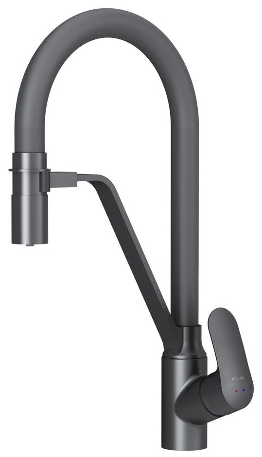 AM.PM Смеситель AM.PM F8007825 Like, для кухни с каналом для питьевой воды/гибким изливом, черный/серый