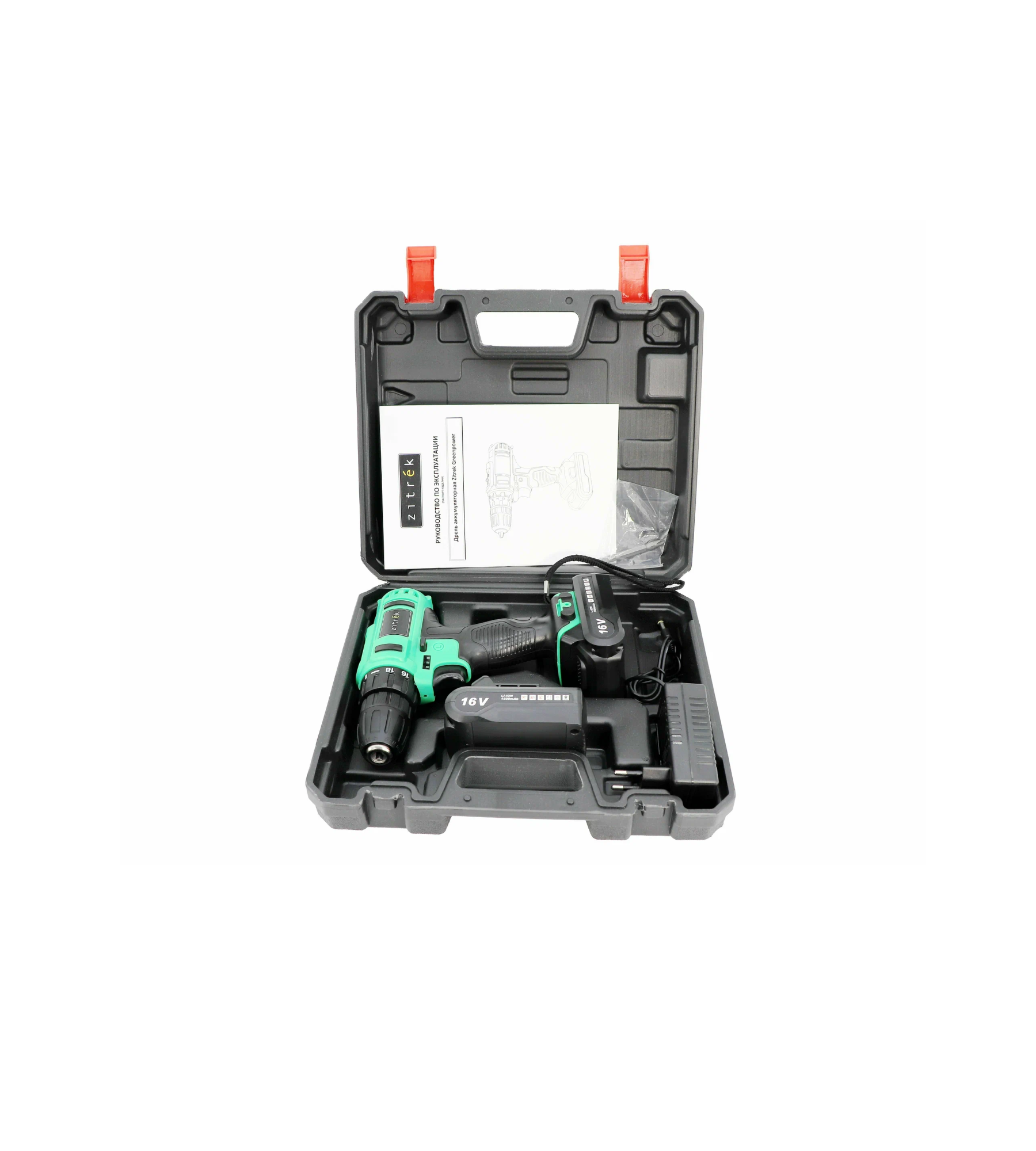 Дрель аккумуляторная Zitrek Greenpower 16-Li (16в, Li-ion аккумулятор 2шт, ЗУ, кейс, бита) .