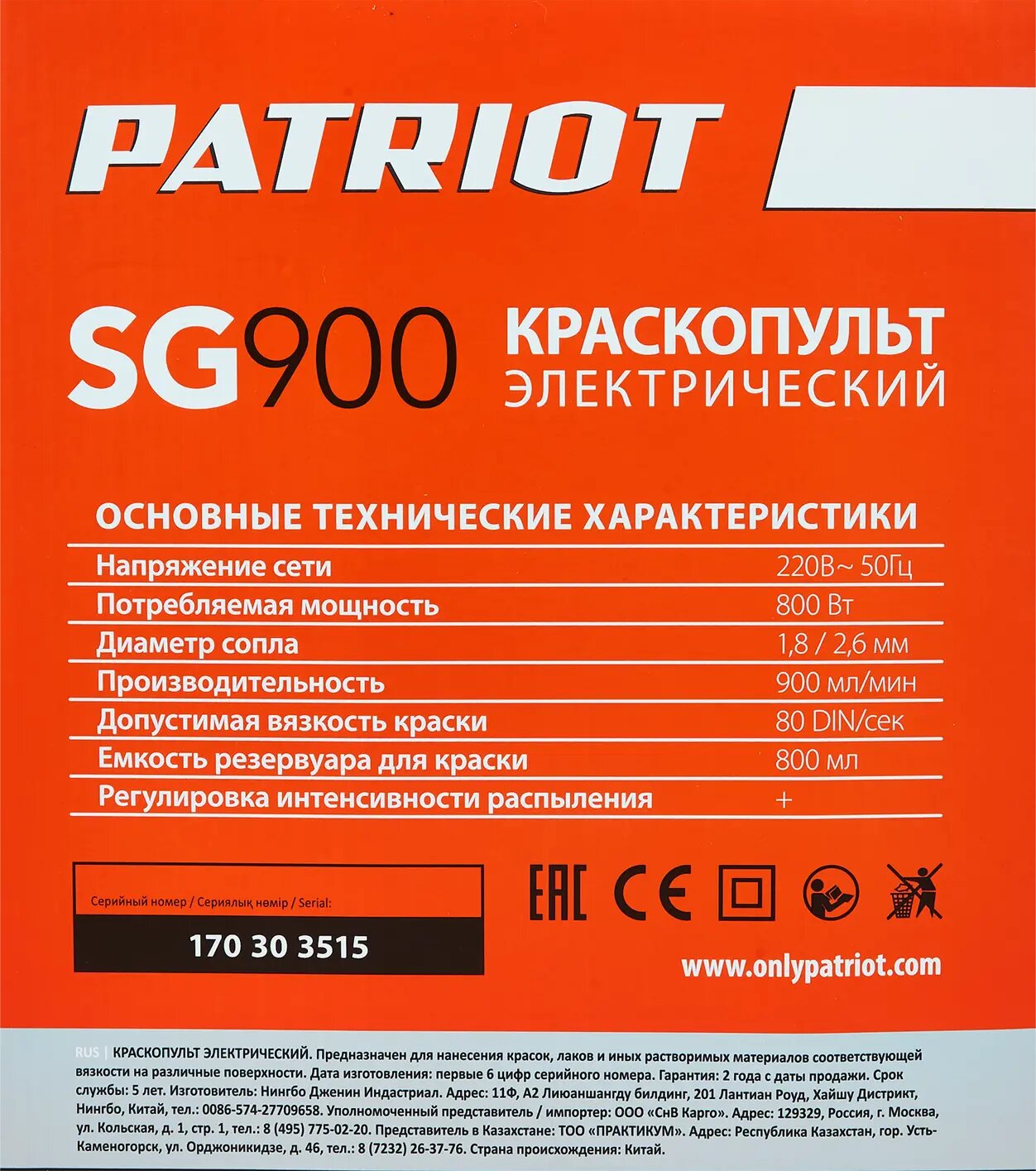 PATRIOT SG900 - Сетевой краскораспылитель