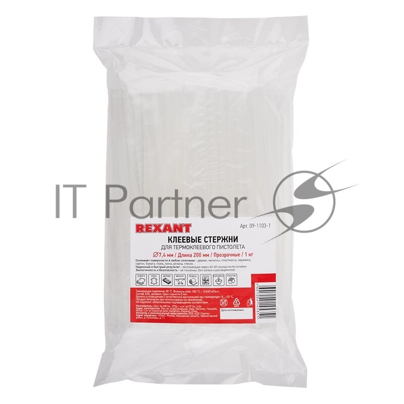 Стержни клеевые Ø7мм, 200мм, прозрачные, 1кг (0,5кг + 0,5кг), пакет REXANT 1 кг арт. 09-1103-1