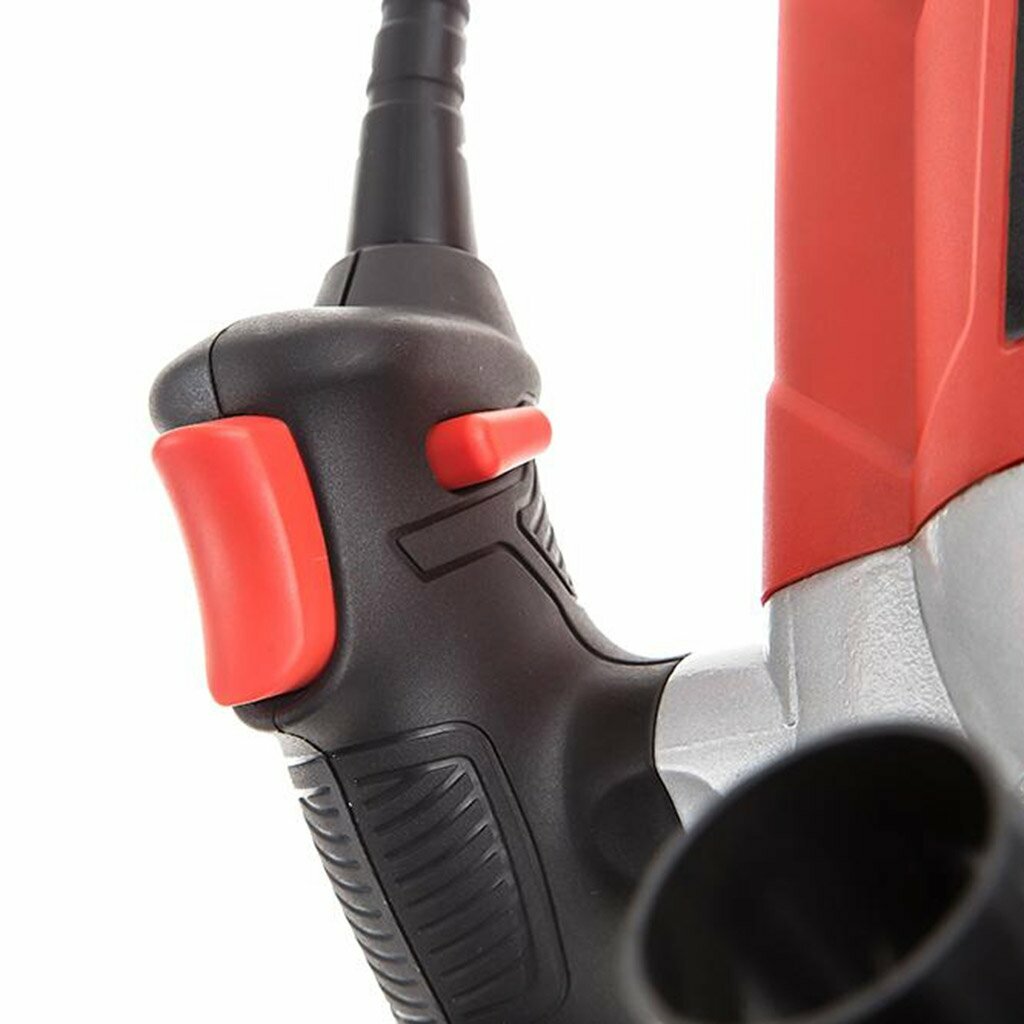 Нет кнопки фиксации "курка", чтобы не держать нажатой постоянно, как на дрели. При фрезеровании окружностей очень не удобно, приходится раз 5 менять руки и изворачиваться и как-то нажимать " курок", учитывая что он с блокировкой от случайного нажатия.