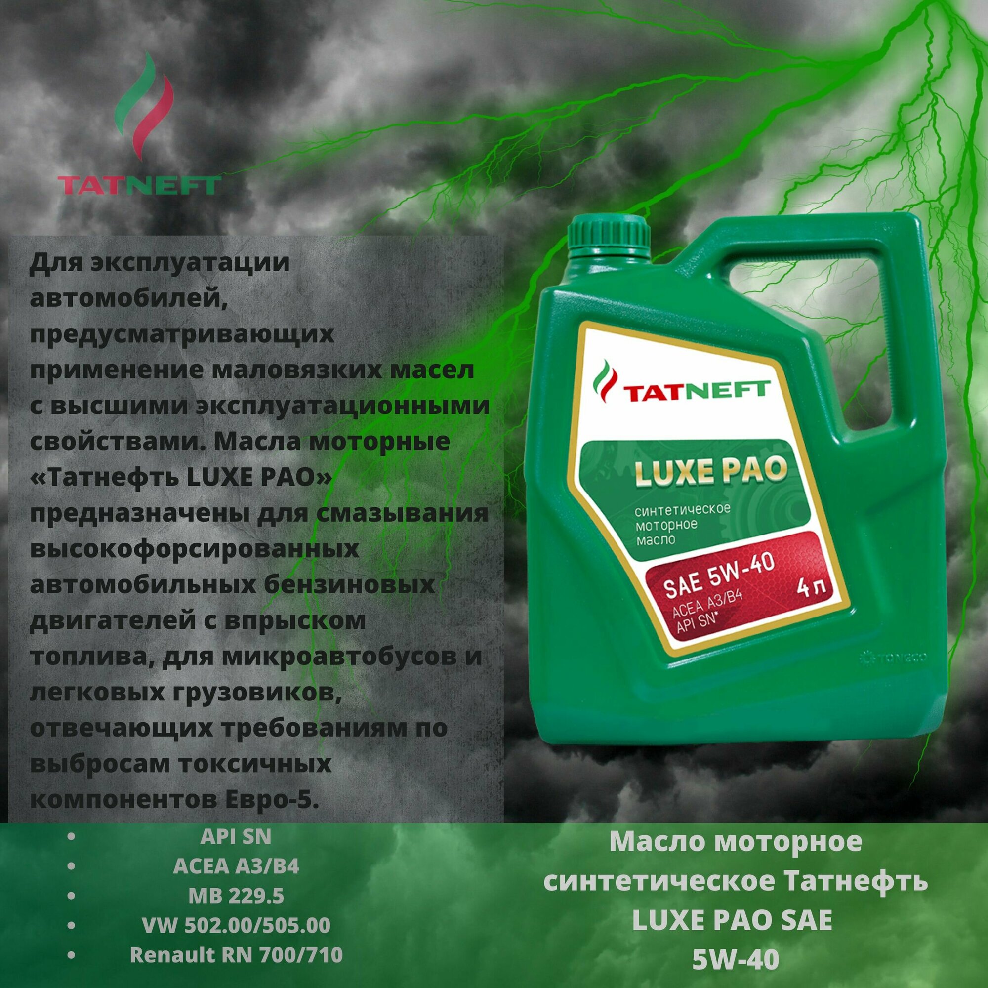 Синтетическое моторное масло Татнефть Масло моторное 5W40 Татнефть LUXE PAO , синтетическое 1 л, 4 л, 1 шт.