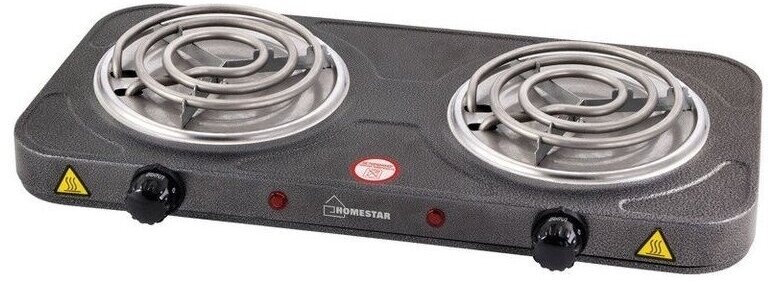 Электроплитка Homestar HS-1105 черная 2-х конфорочная (спиральный ТЭН) 1.0 кВт, 140мм