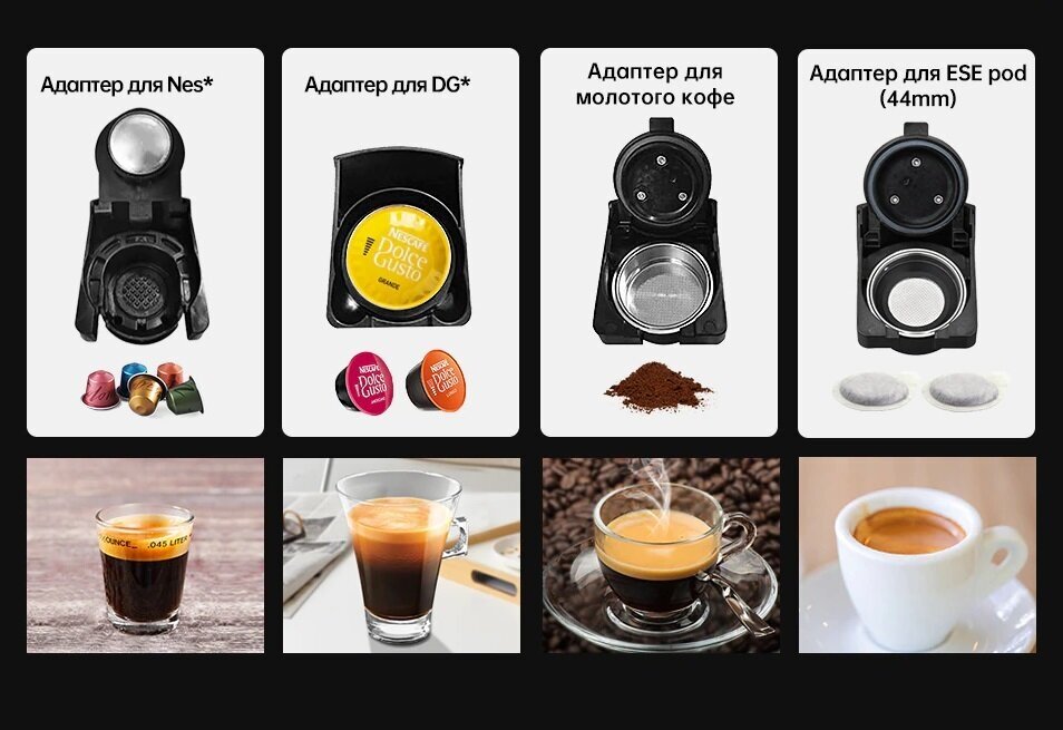 Кофемашина капсульная, 4 в 1 Hibrew (ST-504)H1A черная совместимый Капсулы Nespresso / Dolce Gusto/ Starbucks / Свежемолотый кофе