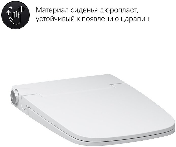 | Дополнительная информация | быстросъемное сиденье, материал - дюропласт, функция подогрева; электронная крышка-биде c технологией TouchReel, позволяющей плавным поворотом настраивать напор воды и менять положение форсунки, можно изменять настройки с помощью пульта управления |