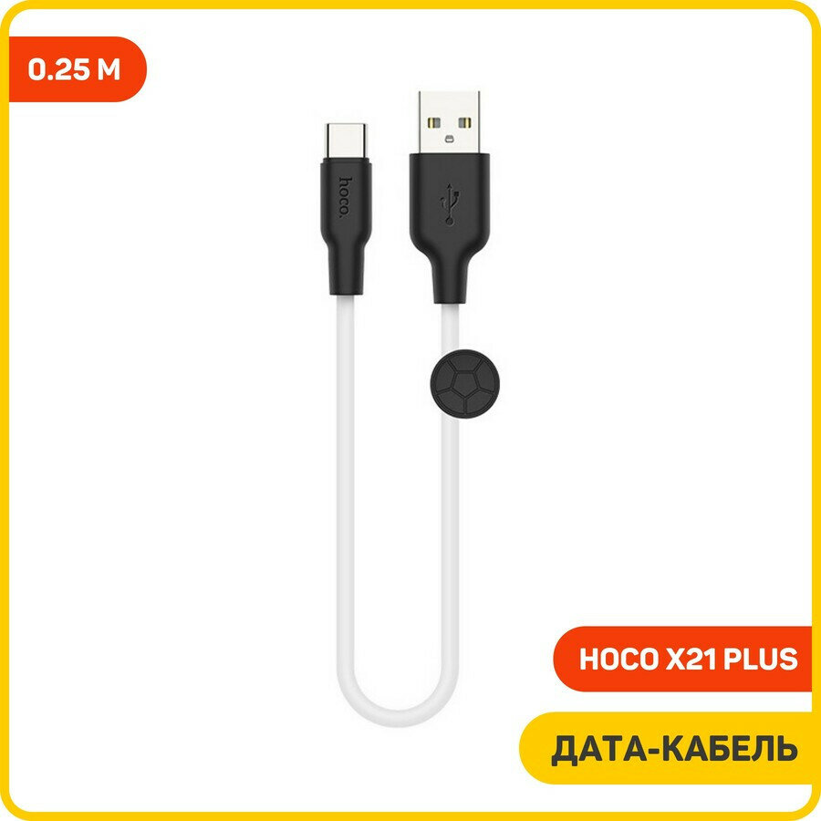 USB кабель HOCO X21 Plus Silicone Type-C, 3А, 0.25м, силикон (белый/черный)