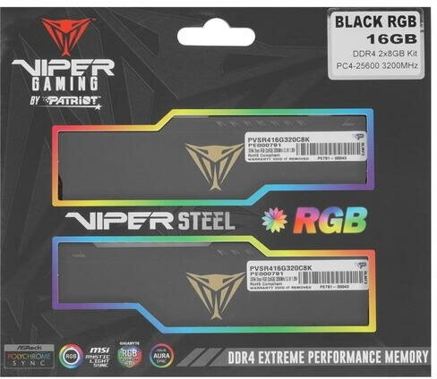 Patriot Viper Steel RGB Pvsr416g320c8k DDR4 - 2x 8ГБ 3200, Dimm, Ret .