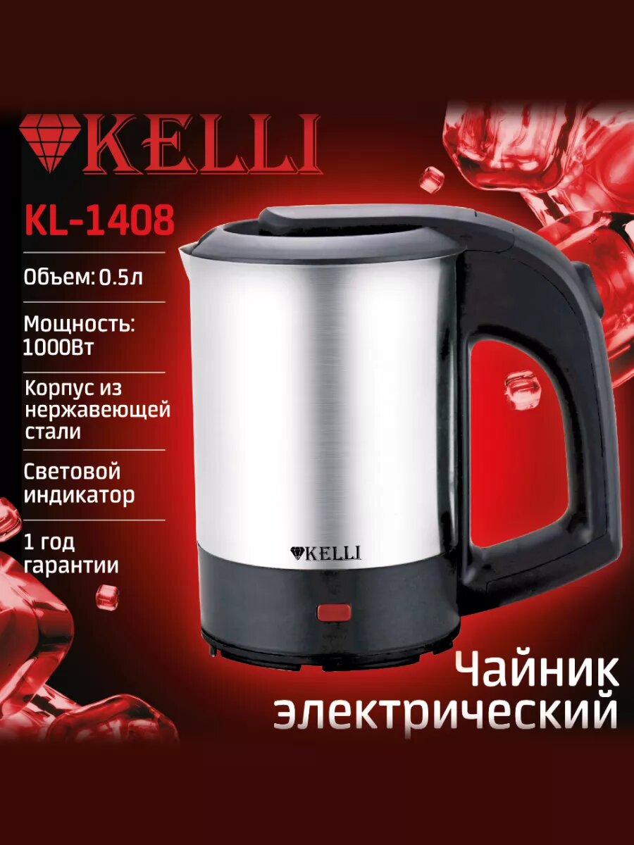 СохранитьЧайник электрический Kelli KL-1408 / 500 мл / 1000 Вт / нержавеющая сталь интересное: