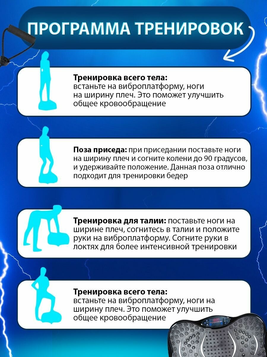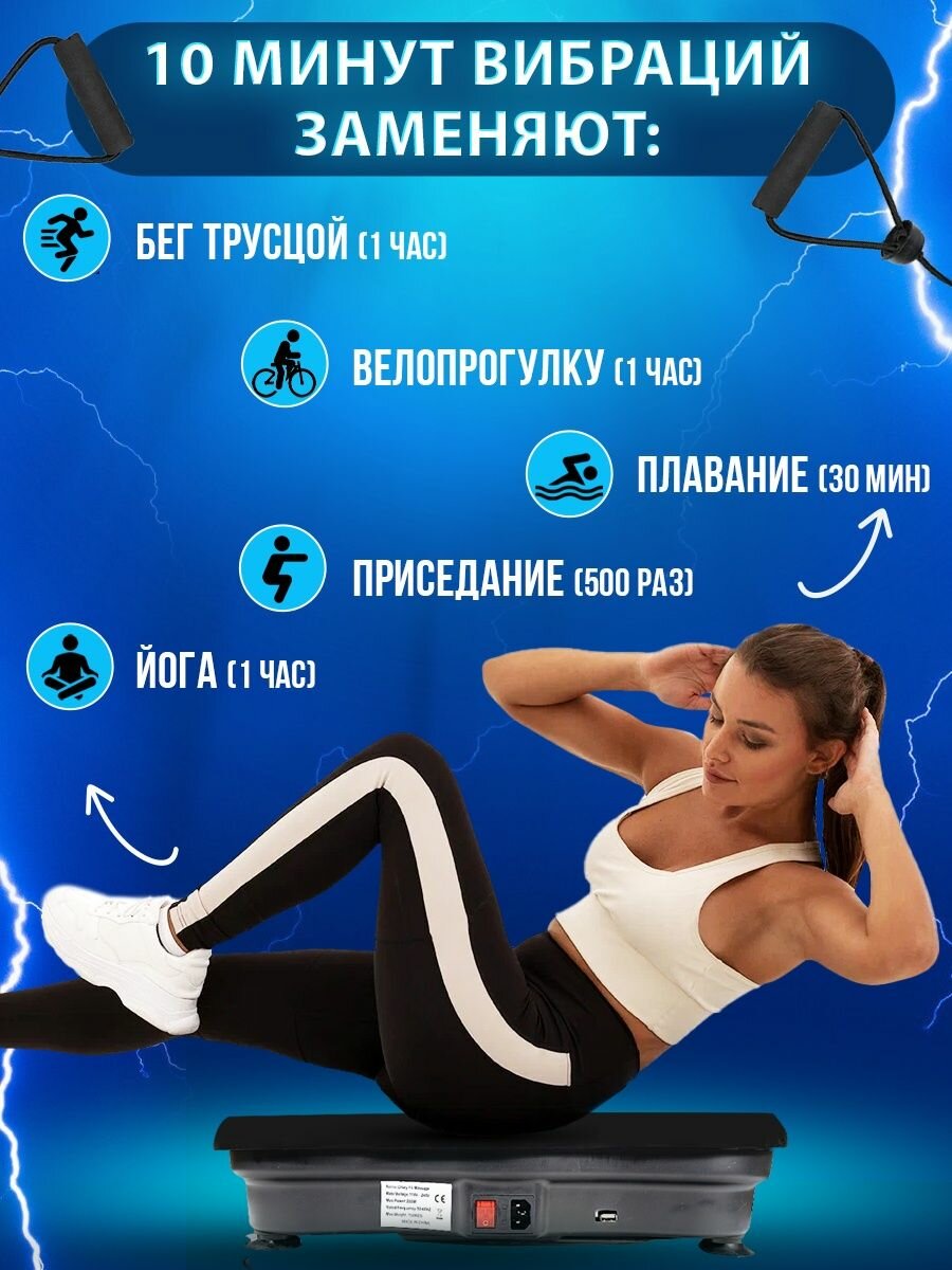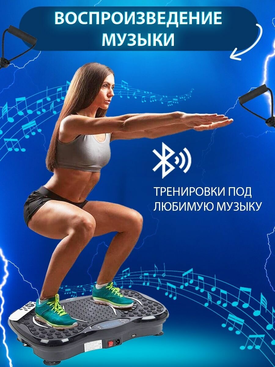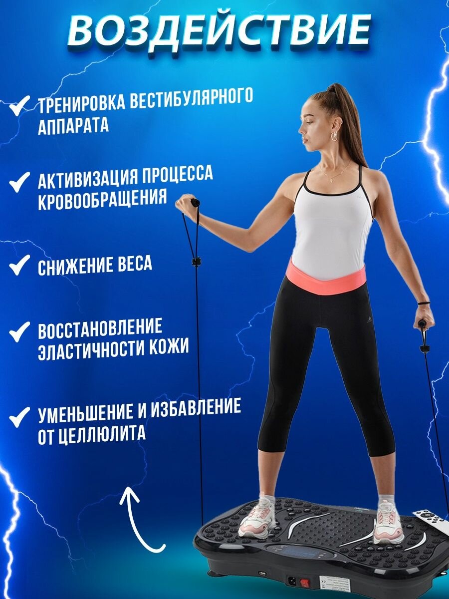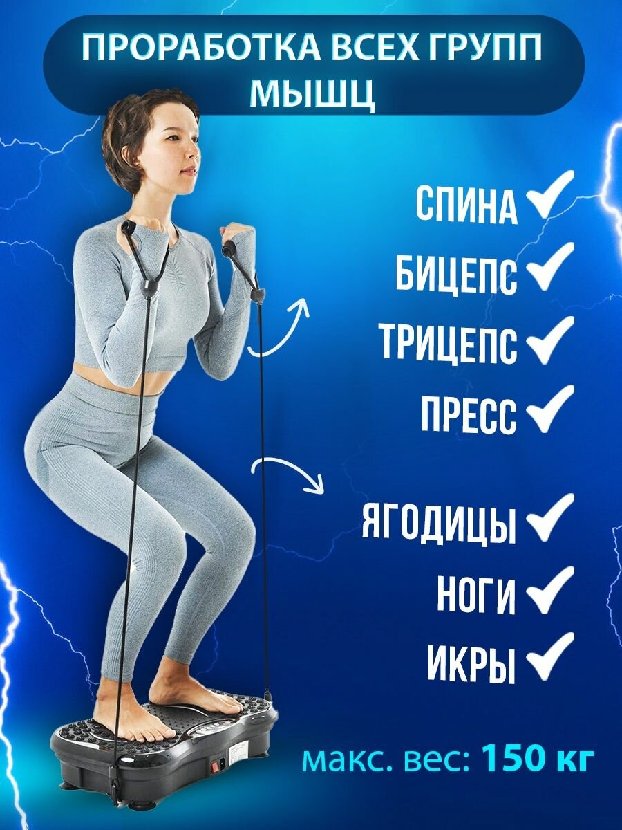 Виброплатформа для похудения до 150кг, Виброплатформа Wellinger, массажер для ног, 99 скоростей, эспандеры 2 шт, чёрная