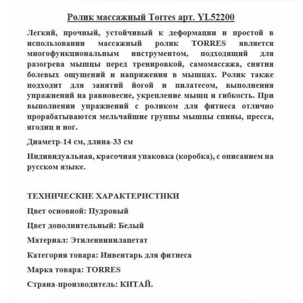 Ниже Вы можете прочитать отзывы на Ролик массажный TORRES YL522001 14*33см, ознакомится с подробными характеристиками, посмотреть интересные обзоры и фотографии на Ролик массажный TORRES YL522001 14*33см.