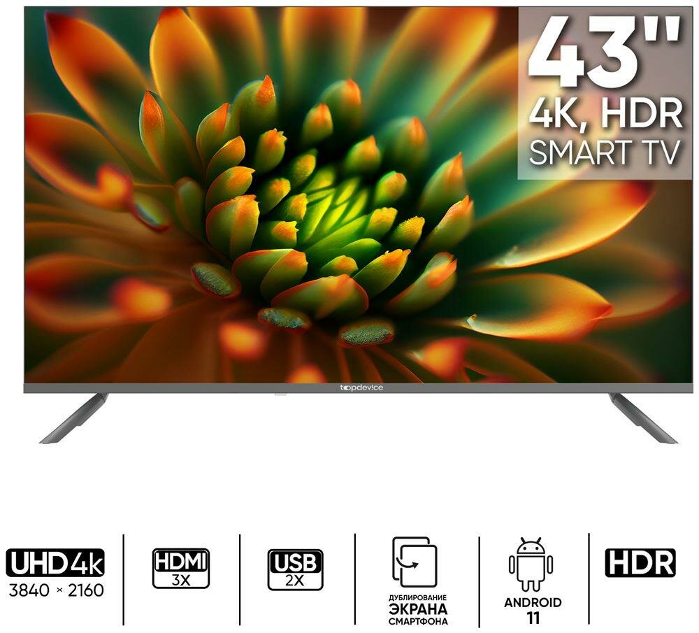 Купить Телевизор 43" Topdevice TDTV43BS06U_ML (4K 3840x2160, SmartTV) серый