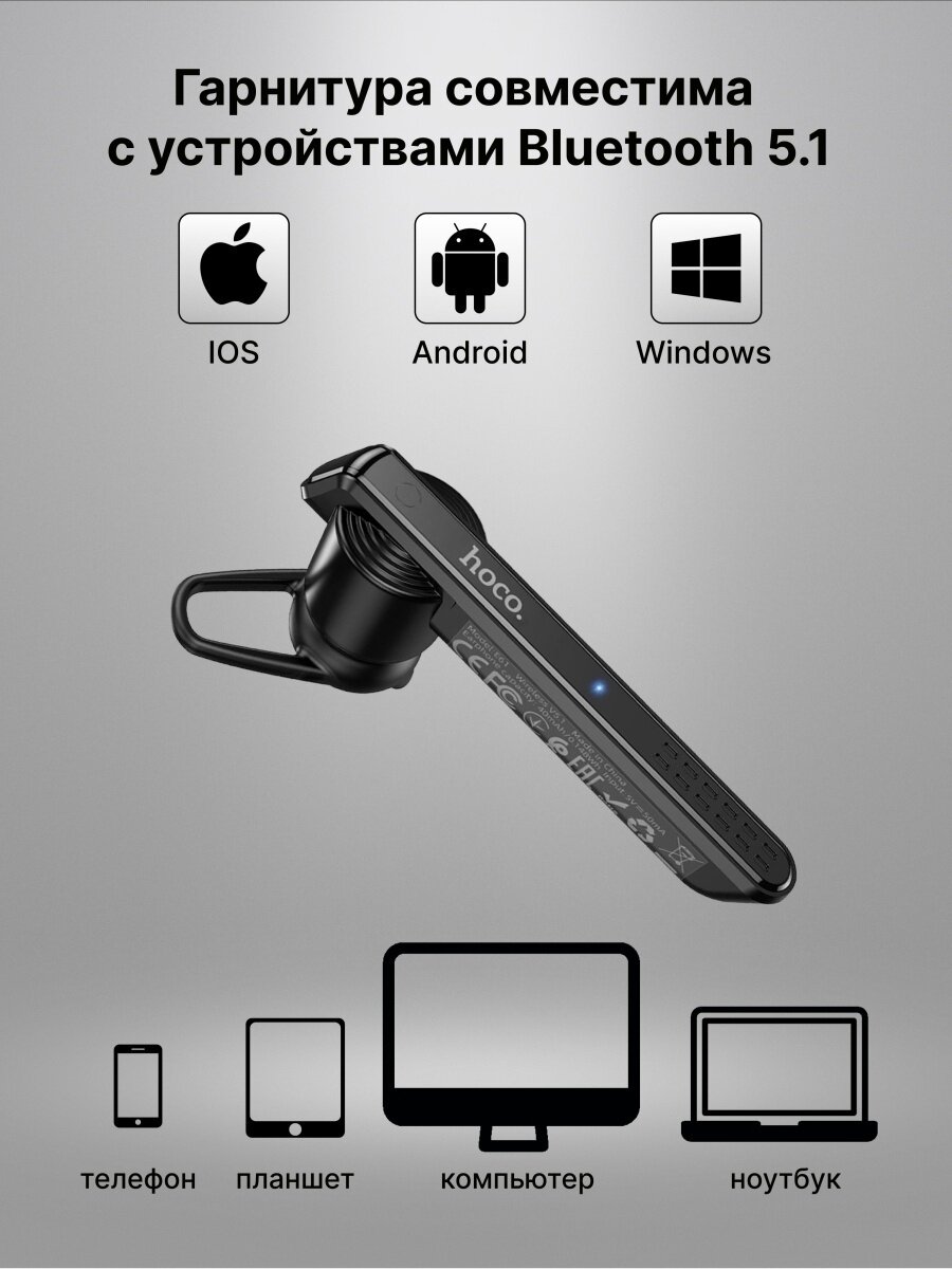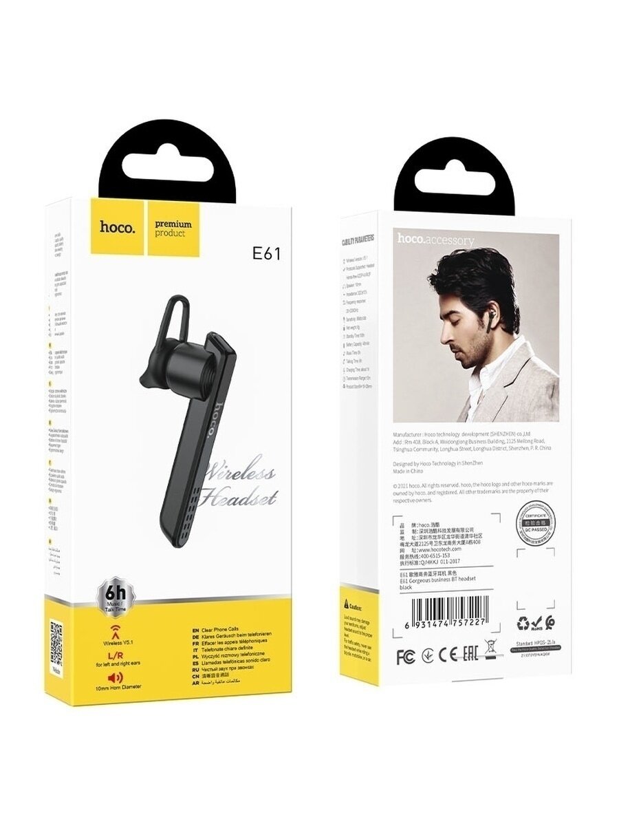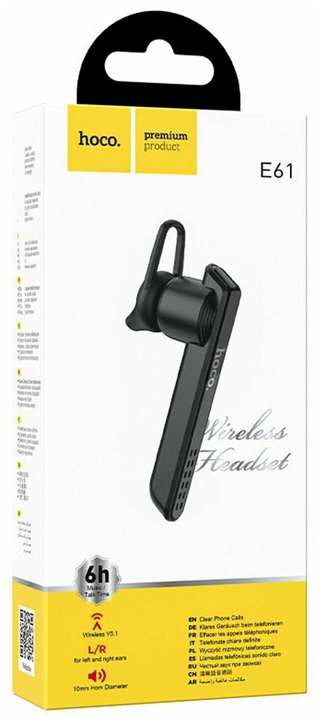 BT гарнитура Hoco, E61 (универсальная для всех телефонов), черный