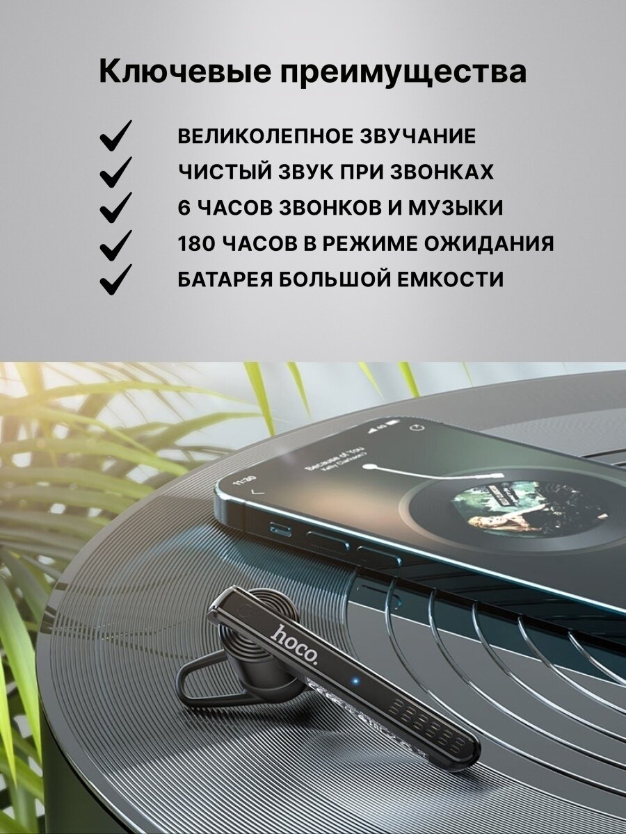 СохранитьБлютуз-гарнитура черная HOCO E61 интересное: