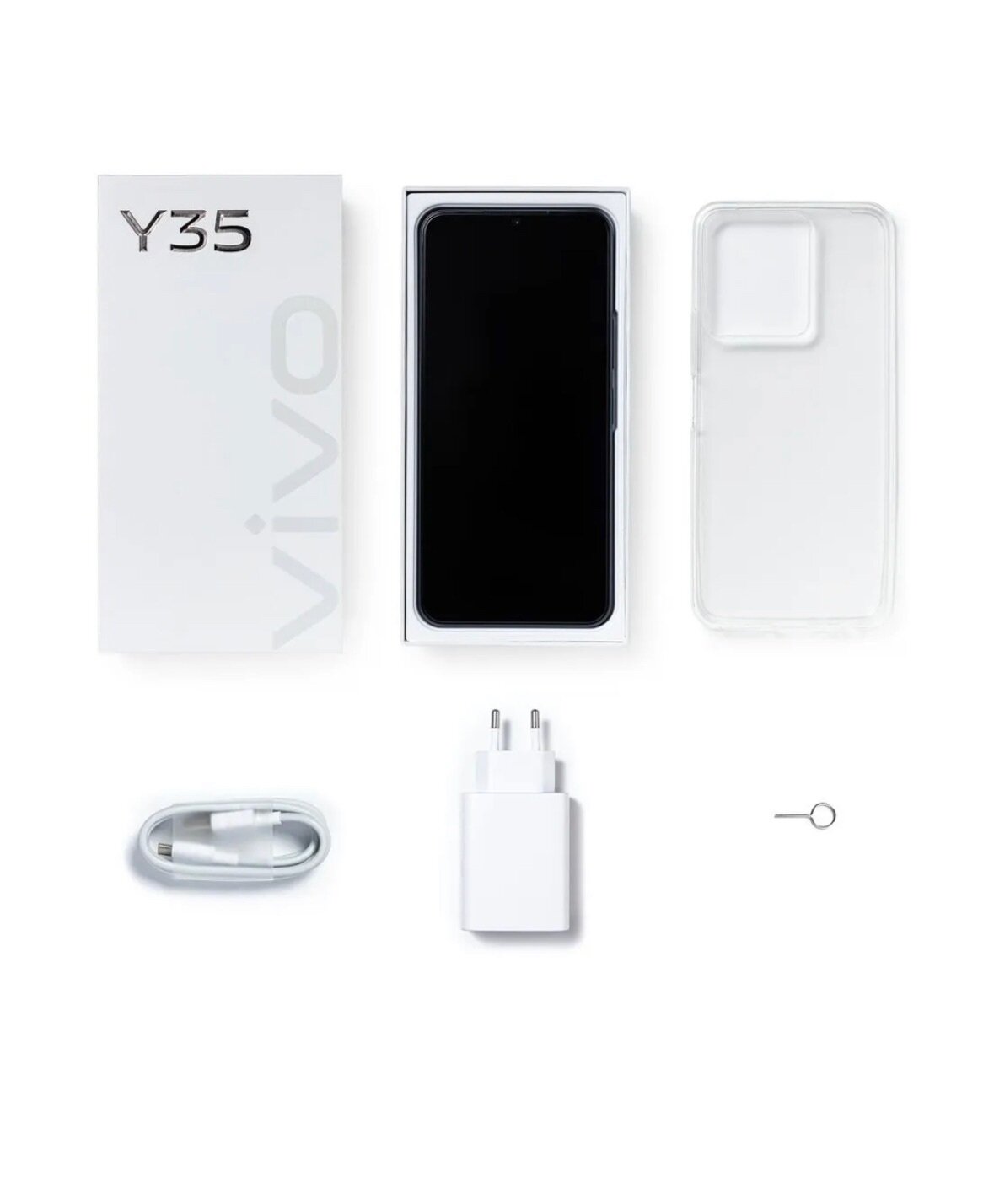 | Комплектация | смартфон Vivo Y35, документация, кабель Type-C—USB, адаптер питания USB, скрепка для извлечения SIM-лотка, защитный чехол, защитная пленка (нанесена) |