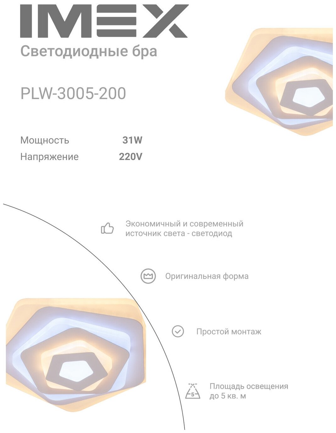 Настенно-потолочный светодиодный светильник IMEX PLW-3005-200