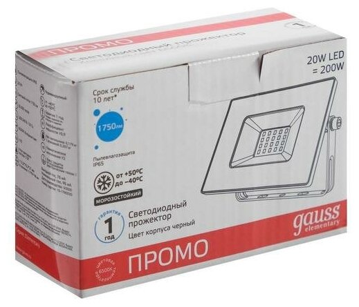 Прожектор Gauss Elementary 20W 1750lm 200-240V 6500К IP65 PROMO черный LED 1/20