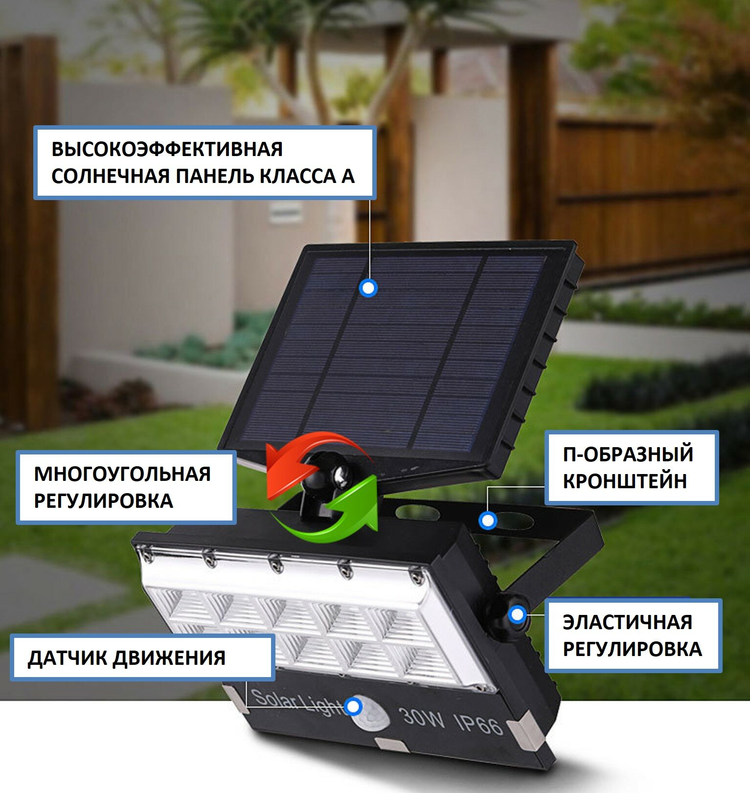 Прожектор светодиодный уличный SL Operated 30W с 3 режимами, датчиком движения на солнечной батарее интересное: