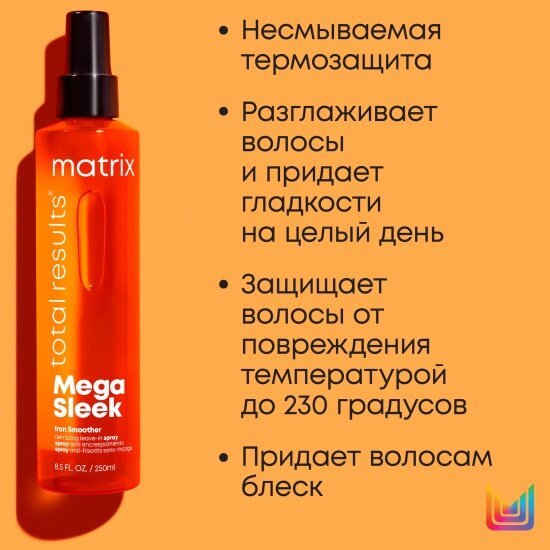 Купить Matrix Mega Sleek Iron Smoother - Матрикс Мега Слик Айрон Смусер Термозащитный спрей для гладкости волос, 250 мл -