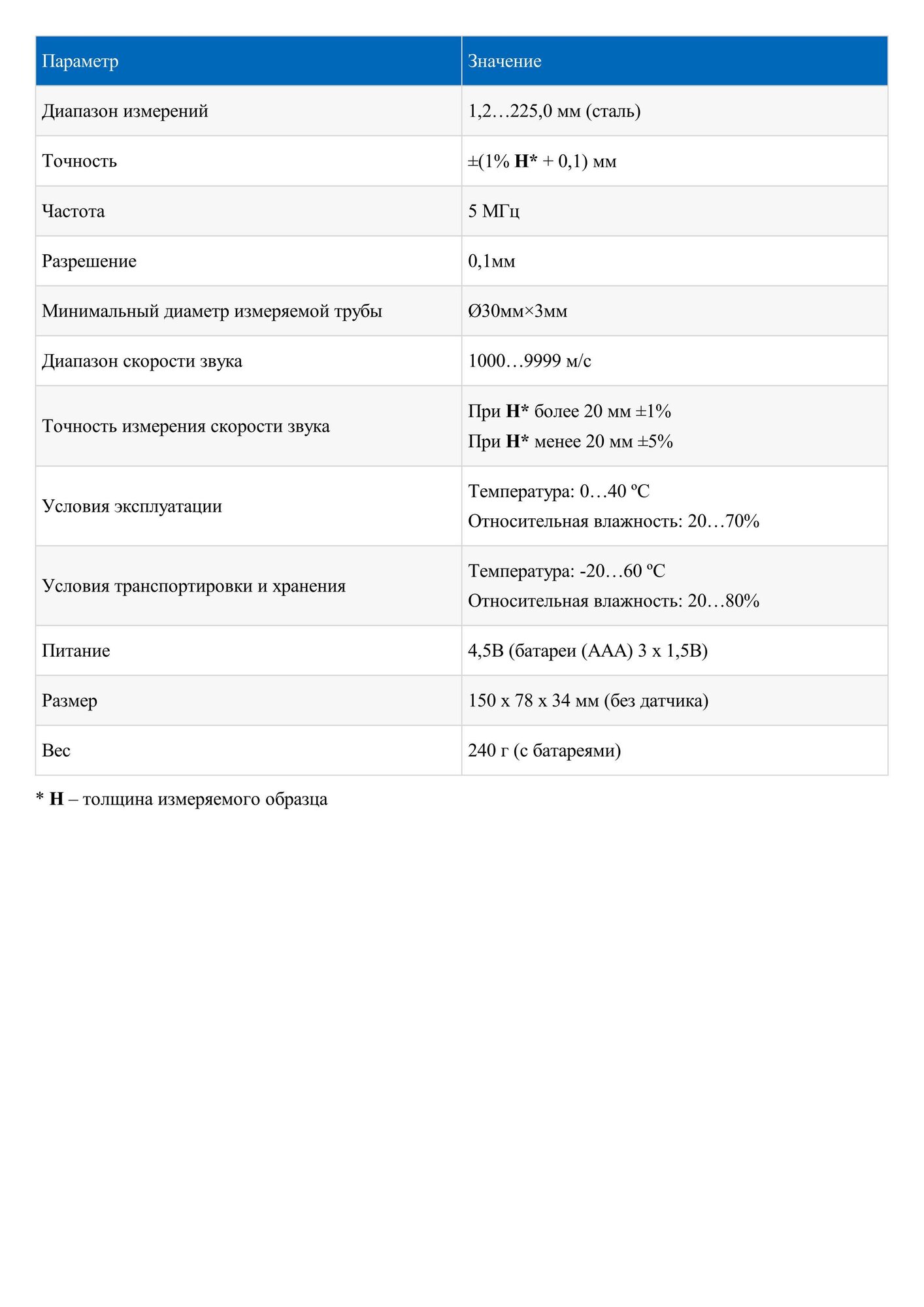 | Максимальная погрешность | 5 % |