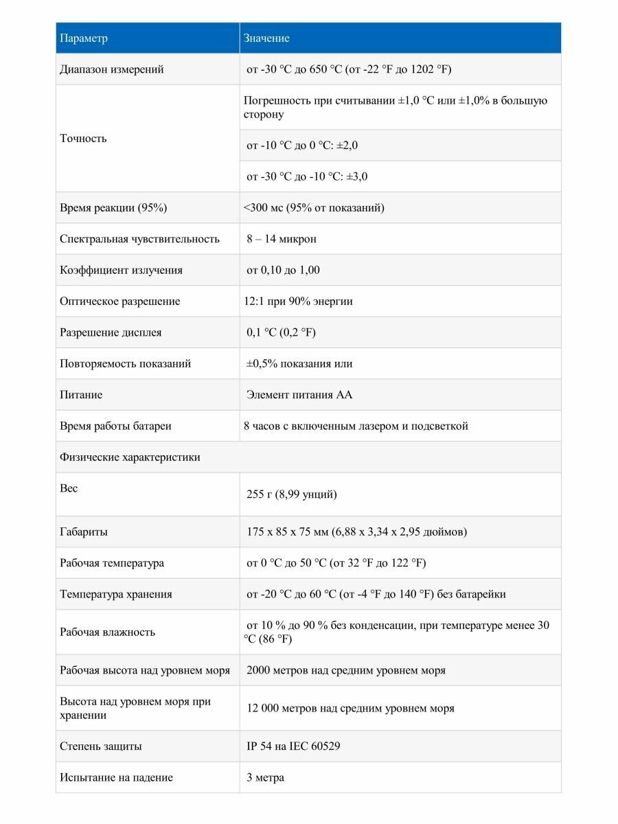 | Минусы: | В комплекте нет таблицы с коэффициентами эмисии для различных материалов |