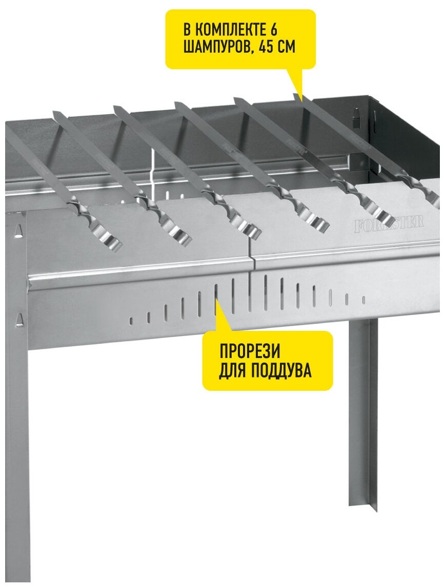 FORESTER Мангал разборный с ребрами жесткости + 6 шампуров (патент), с усиленным дном, 50*30*50 см (5)