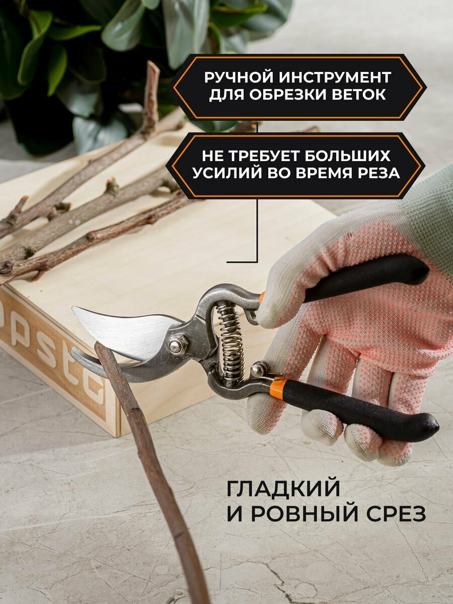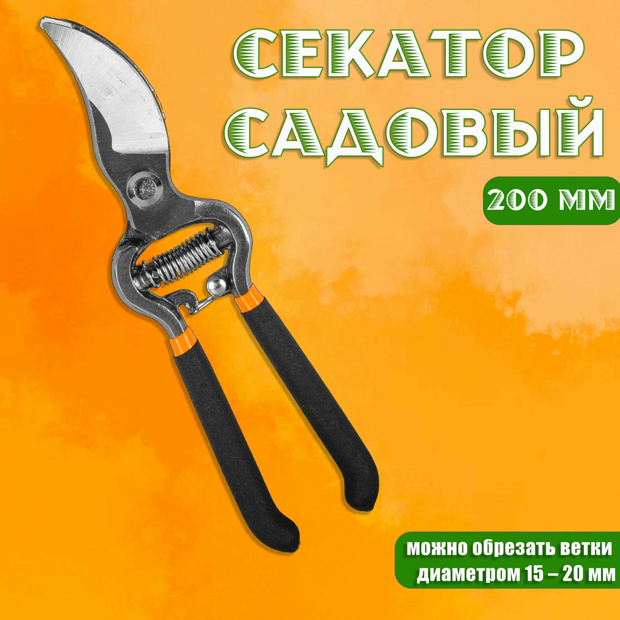 Секатор, 200мм., возвратная пружина, тефлоновое покрытие, эргономичные обрезиненные рукоятки