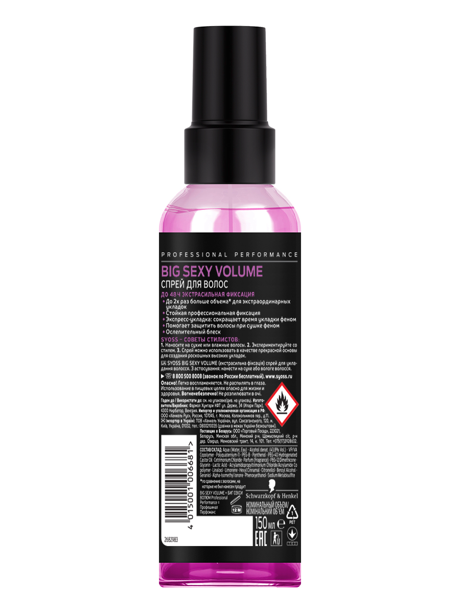Syoss Спрей для укладки волос Big sexy volume, экстрасильная фиксация, 150 мл