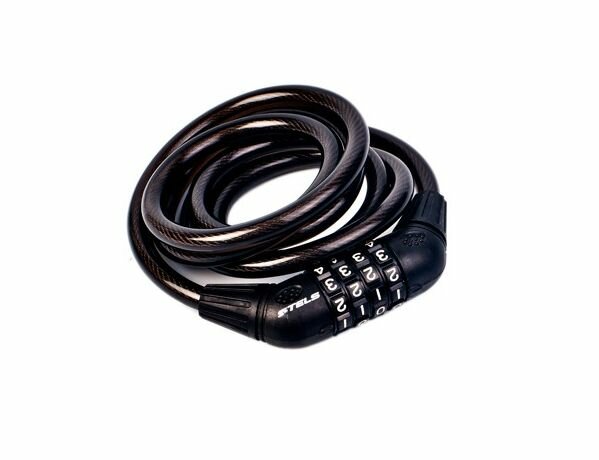 Замок велосипедный STELS 87601, 10x1500 мм, стальной, кодовый 4 цифры, черный, арт. 540015