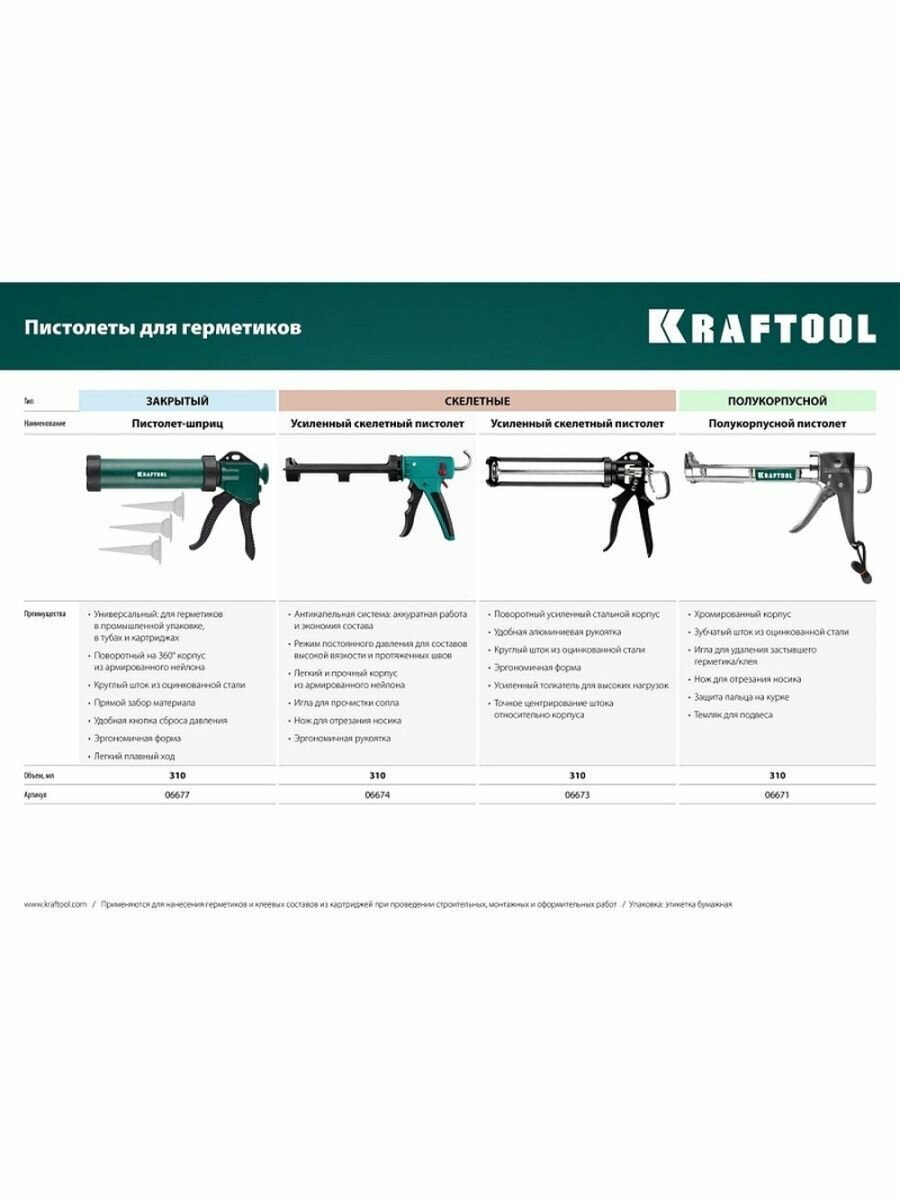 Ниже Вы можете прочитать отзывы на Пистолет для герметика KRAFTOOL 06674, ознакомится с подробными характеристиками, посмотреть интересные обзоры и фотографии на Пистолет для герметика KRAFTOOL 06674.