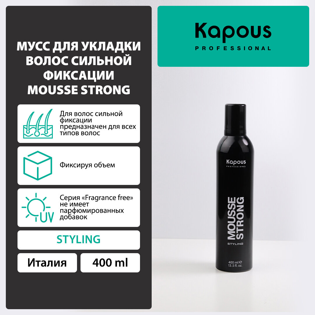 Купить Мусс для укладки волос сильной фиксации Kapous «Mousse Strong», 400 мл