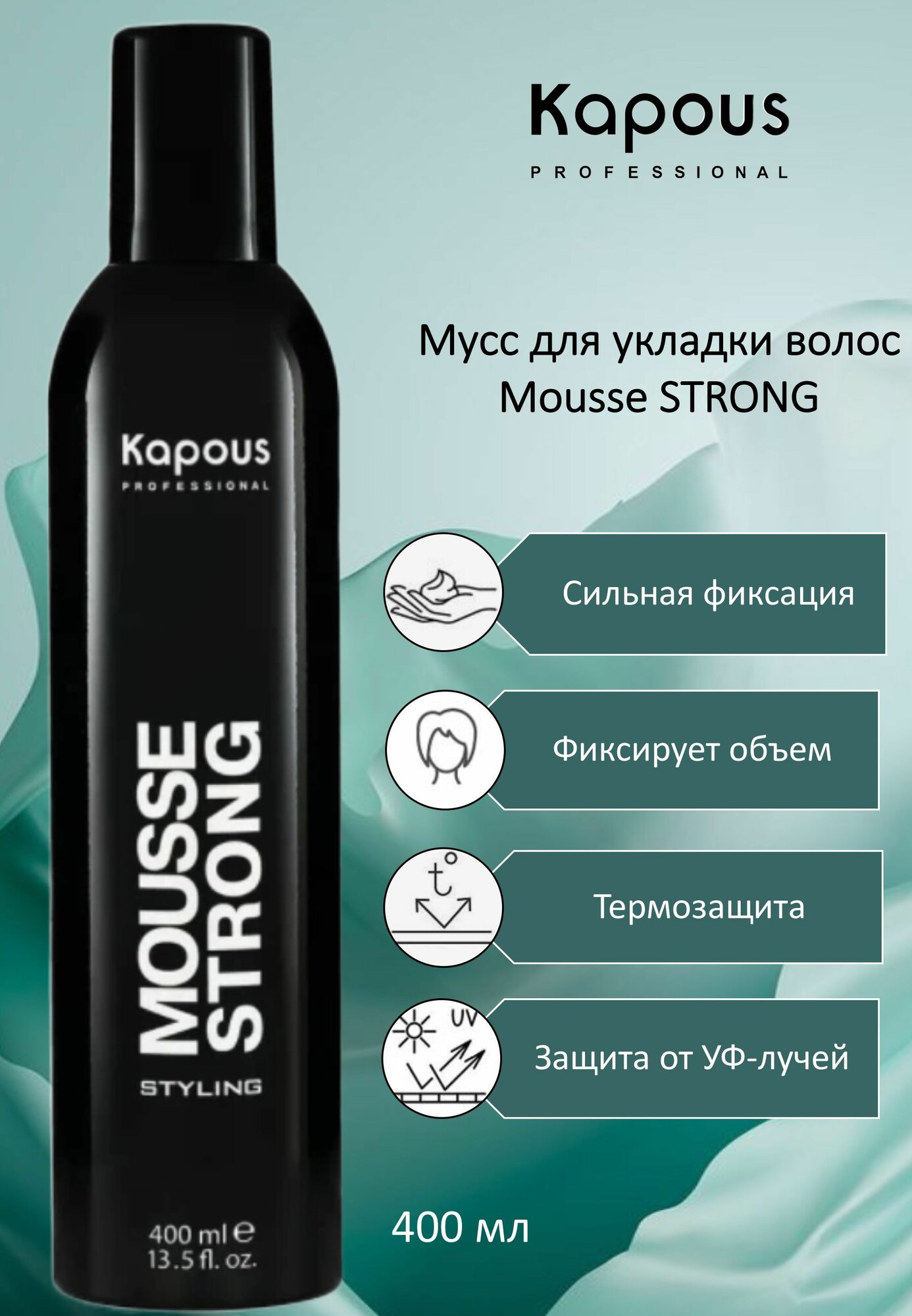мусс для укладки волос сильной фиксации 400 мл KAPOUS