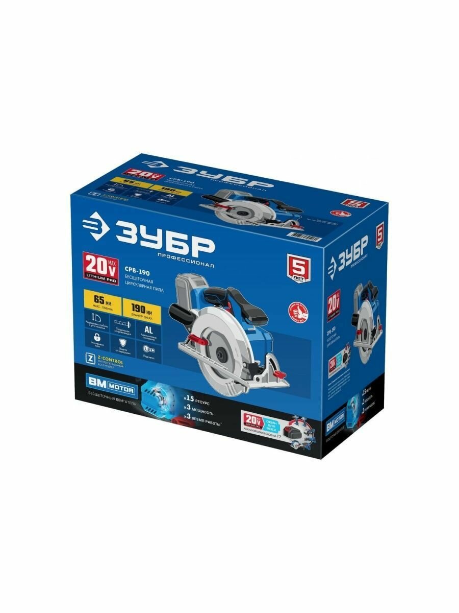 Пила ЗУБР 20В бесщеточная циркулярная, без АКБ, в коробке, Профессионал. CPB-190 интересное: