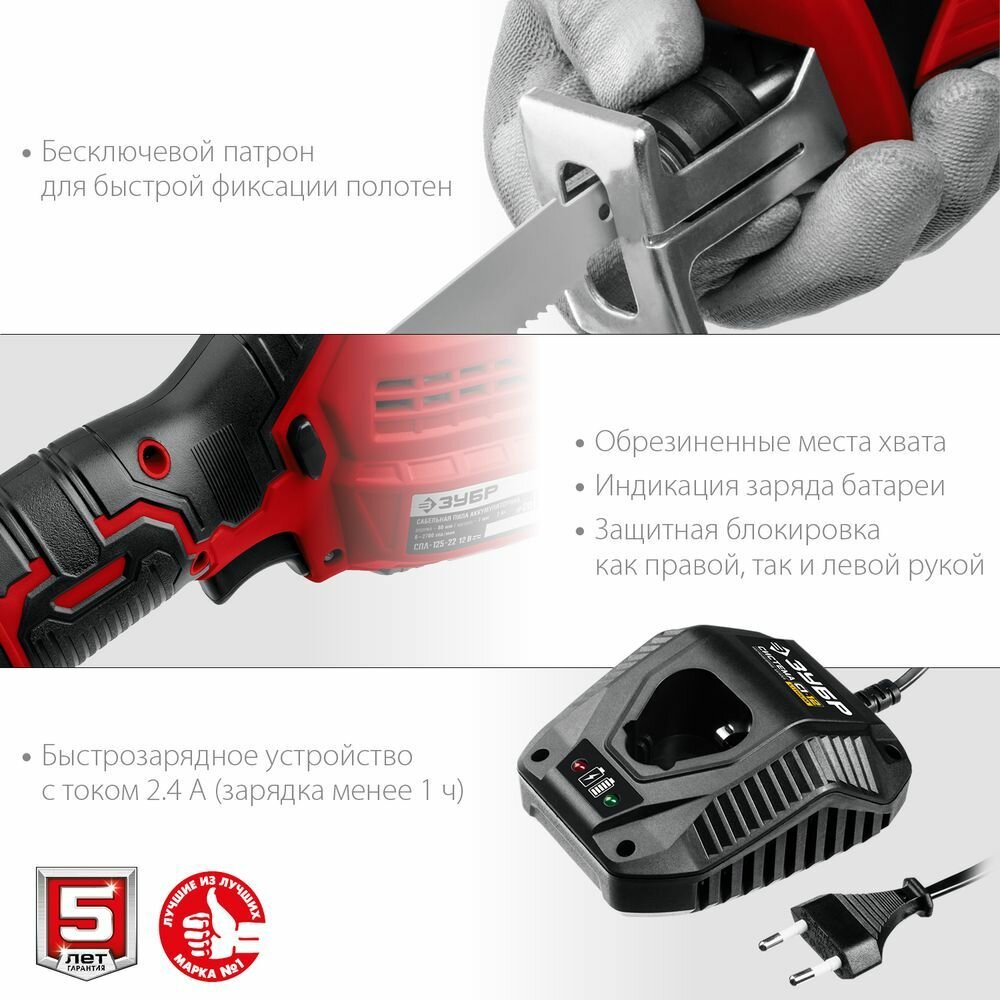 Сабельная пила Зубр СПЛ-125-22, аккумуляторная