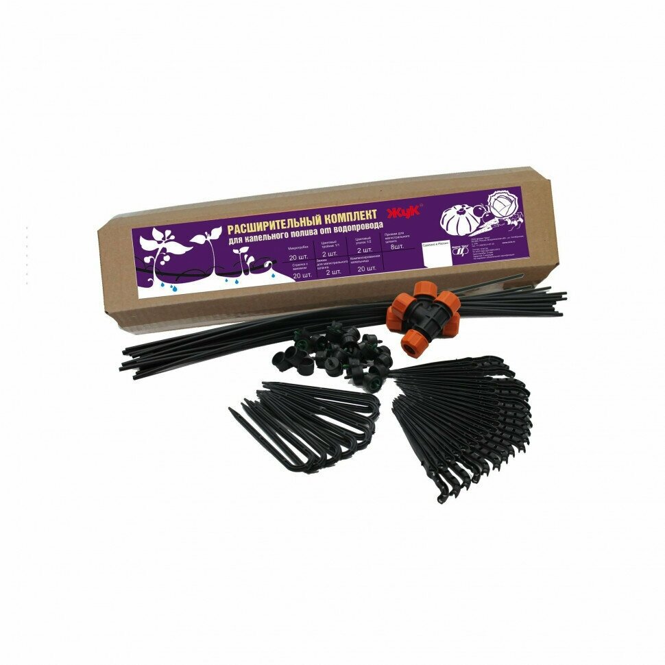 Расширительный коплект ЖУК от водопровода для расширения площади;комплектация: компенсированные капельницы, микротрубки, цанговые соединения, стрелки заглушки