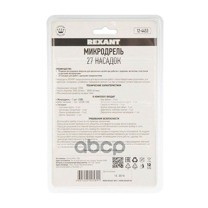 Дрель (гравер) Rexant 5000 - 18000 об/мин, 20 Вт, 26 насадок, блистер 12-4453 .